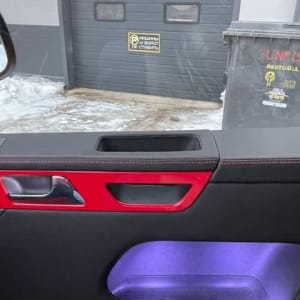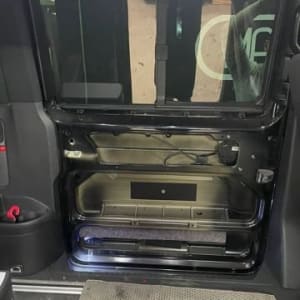 Дверные карты перешиты в кожу.