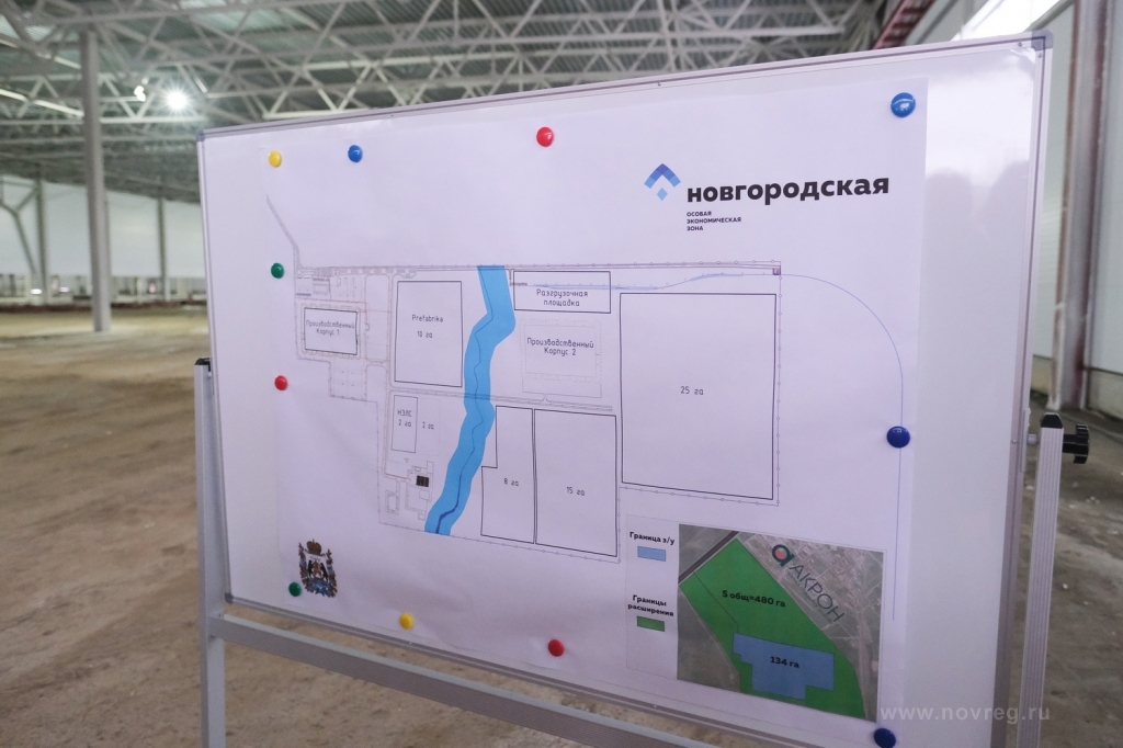 Общая площадь ОЭЗ «Новгородская» составляет 184,5 гектара. Как отметил губернатор Андрей Никитин, идея производственного корпуса была в том, что есть не очень большие компании, которые не хотят на первом этапе заниматься стройкой, непрофильными для них вещами. Здесь они получают готовую площадку: заехал и можешь работать. Для резидентов ОЭЗ областным законодательством предусматриваются налоговые льготы.