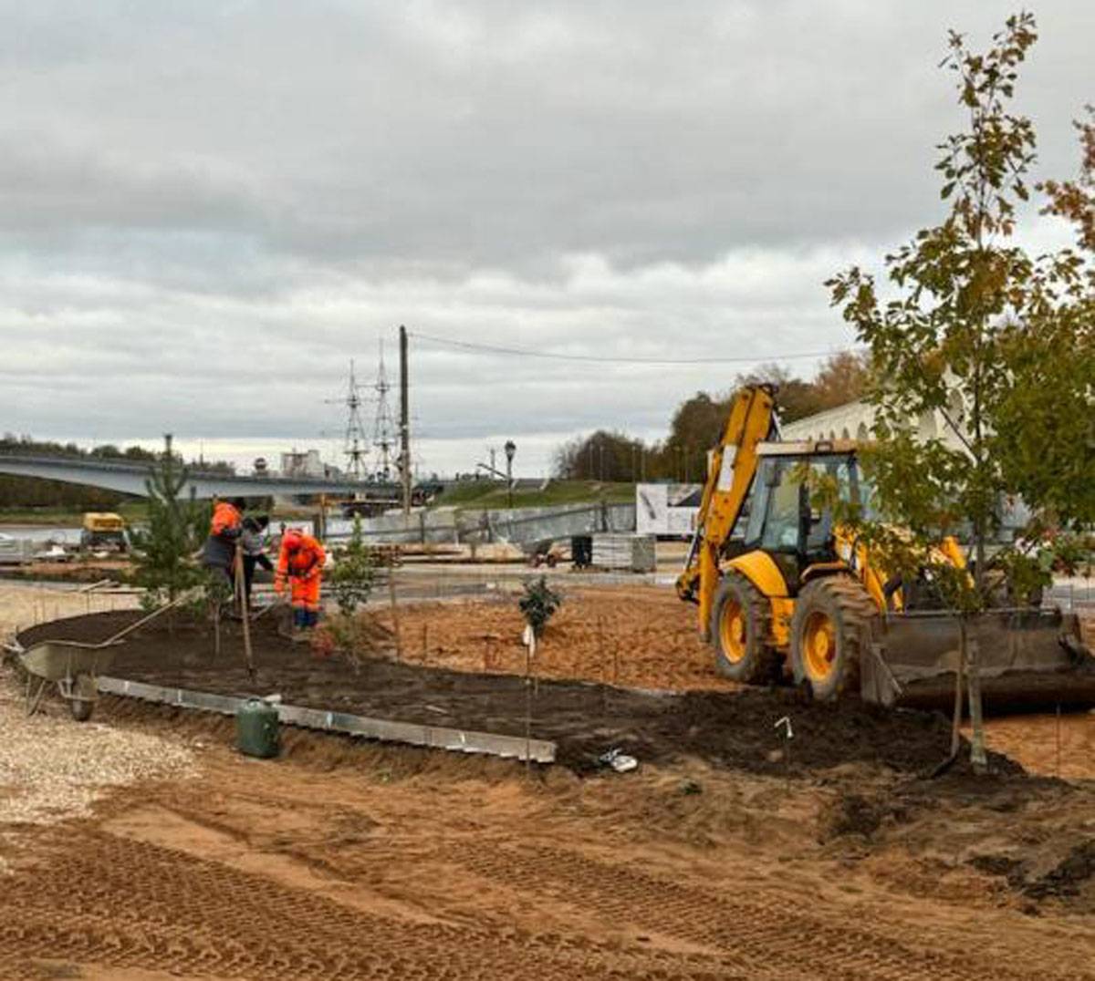Подрядчик приступил к озеленению территории у гостиницы «Россия» на набережной Невского в Великом Новгороде