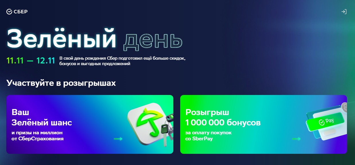 Сбер уже пятый год подряд проводит акцию Зелёный день. Традиционно банк и его партнёры делают интересные и полезные предложения всем жителям России. Среди них выгодные условия по кредитам и вкладам, дебетовым и кредитным картам, другим финансовым продуктам. Свои предложения готовят компании СберСтрахование, СберМаркет, СберМегаМаркет, СберЗдоровье и другие. Из года в год Зелёный день помогает людям решать повседневные задачи, экономя деньги и время. А удобная авторизация по единой учётной записи — Сбер ID — гарантирует безопасность платежей.