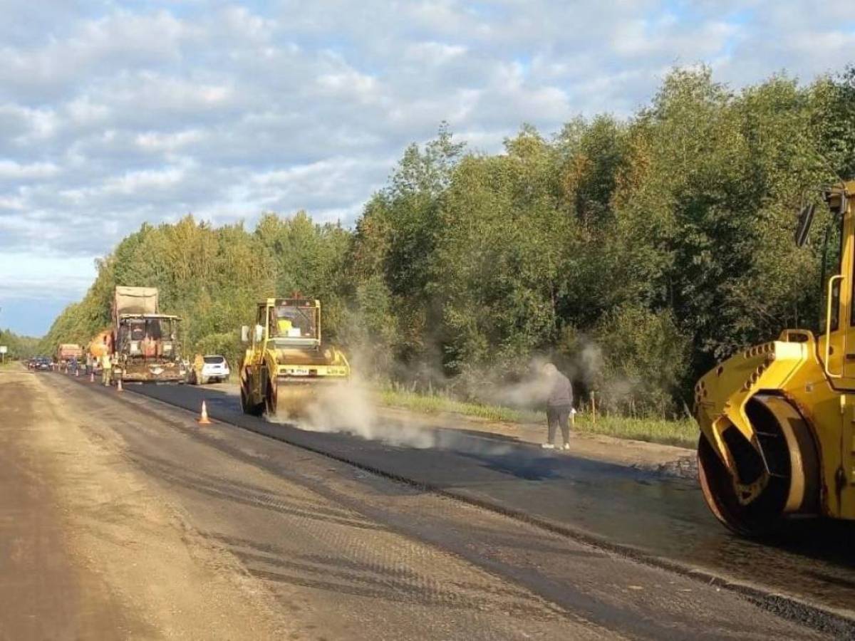 В Батецком районе приступили к укладке асфальта на дороге Великий Новгород — Луга