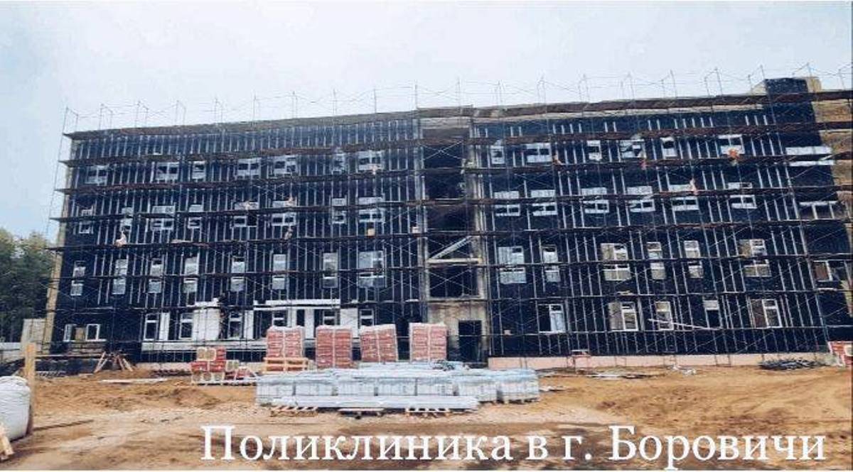 Так, в Боровичах в строящейся детско-взрослой поликлинике началось устройство перехода между новым и старыми корпусами.