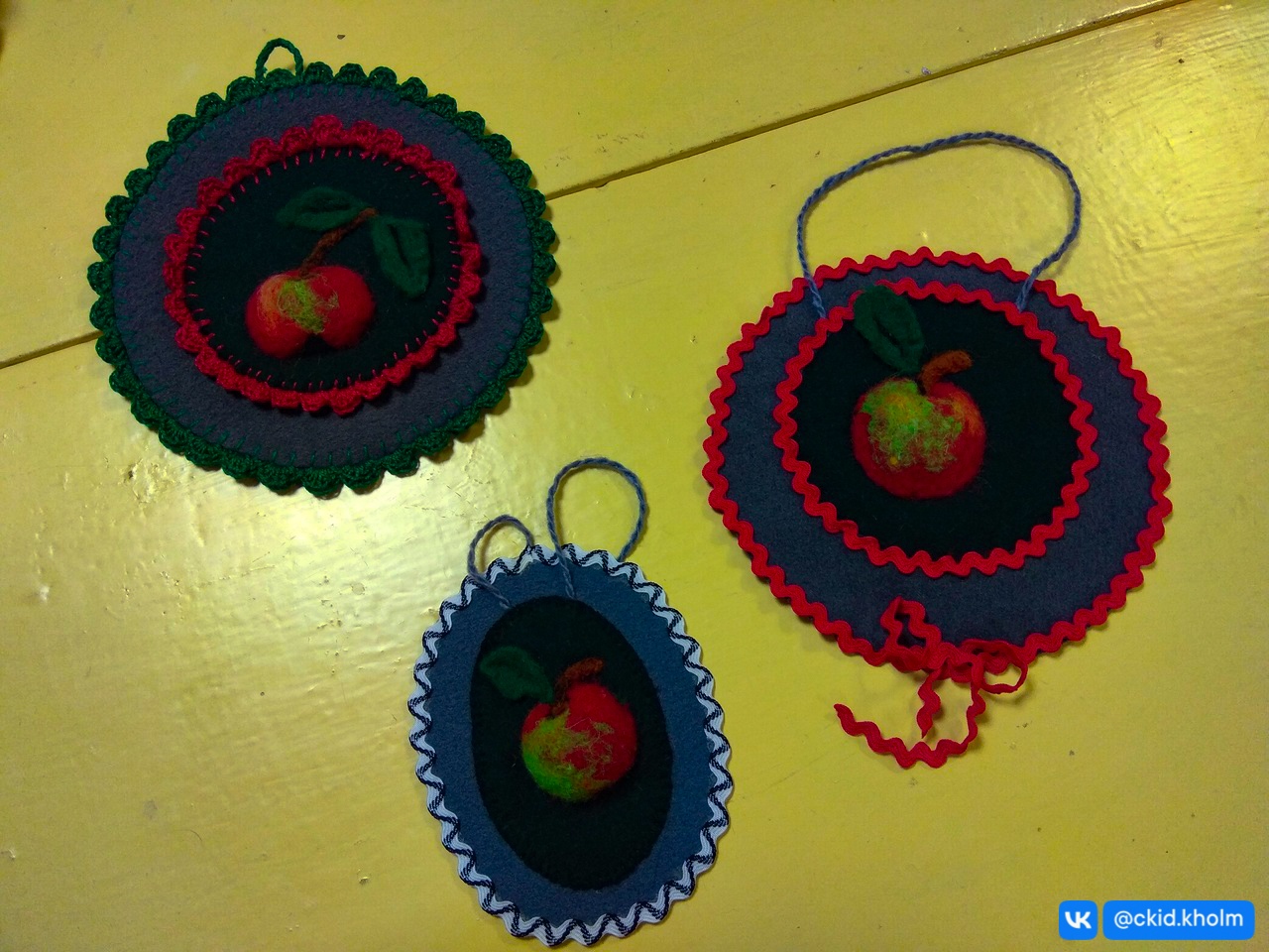 Завершили оформление выполненных на прошлом занятии панно "Яблочко" в технике фелтинг.