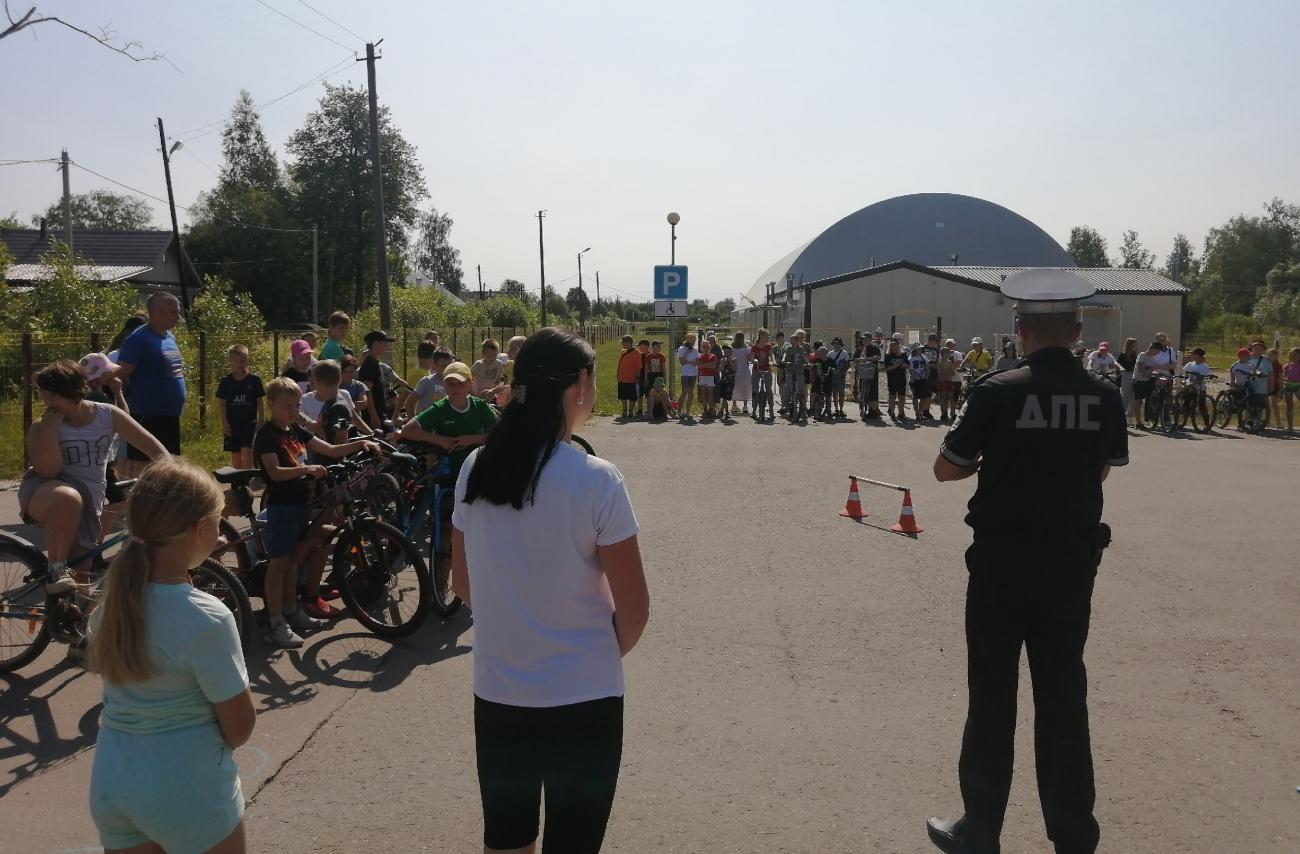 Перед началом соревнований с ребятами провел тематическую беседу инспектор ГИБДД. Он напомнил о правилах движения на велосипедах и самокатах, о поведении детей на проезжей части.