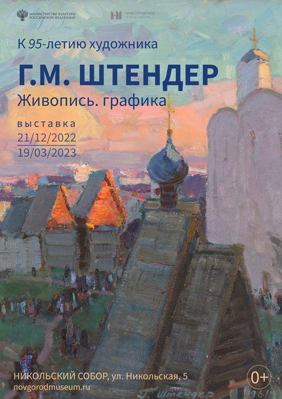 21 декабря 15 часов в выставочном зале Никольского собора Новгородский музей-заповедник откроет выставку «Г.М. Штендер. Живопись, графика. К 95-летию художника». На выставке представлено более 60 произведений 1950-х – 1980-х годов.
