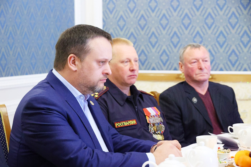 В канун Дня защитника Отечества губернатор Андрей НИКИТИН встретился с участниками специальной военной операции и Уполномоченным по правам человека в регионе Анатолием Бойцевым. Одной из тем общения стало создание в Великом Новгороде мемориального комплекса в память о героях СВО. Такое предложение высказал заместитель начальника управления Росгвардии по Новгородской области Игорь ШУЛИКО.