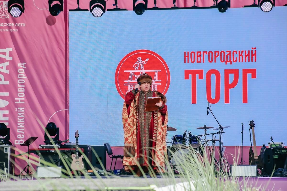 Сегодня, 12 июня, одной из центральных площадок празднования Дня России в Великом Новгороде стало Ярославово дворище – здесь открылась первая ярмарка креативных индустрий и брендов «Новгородский торг».