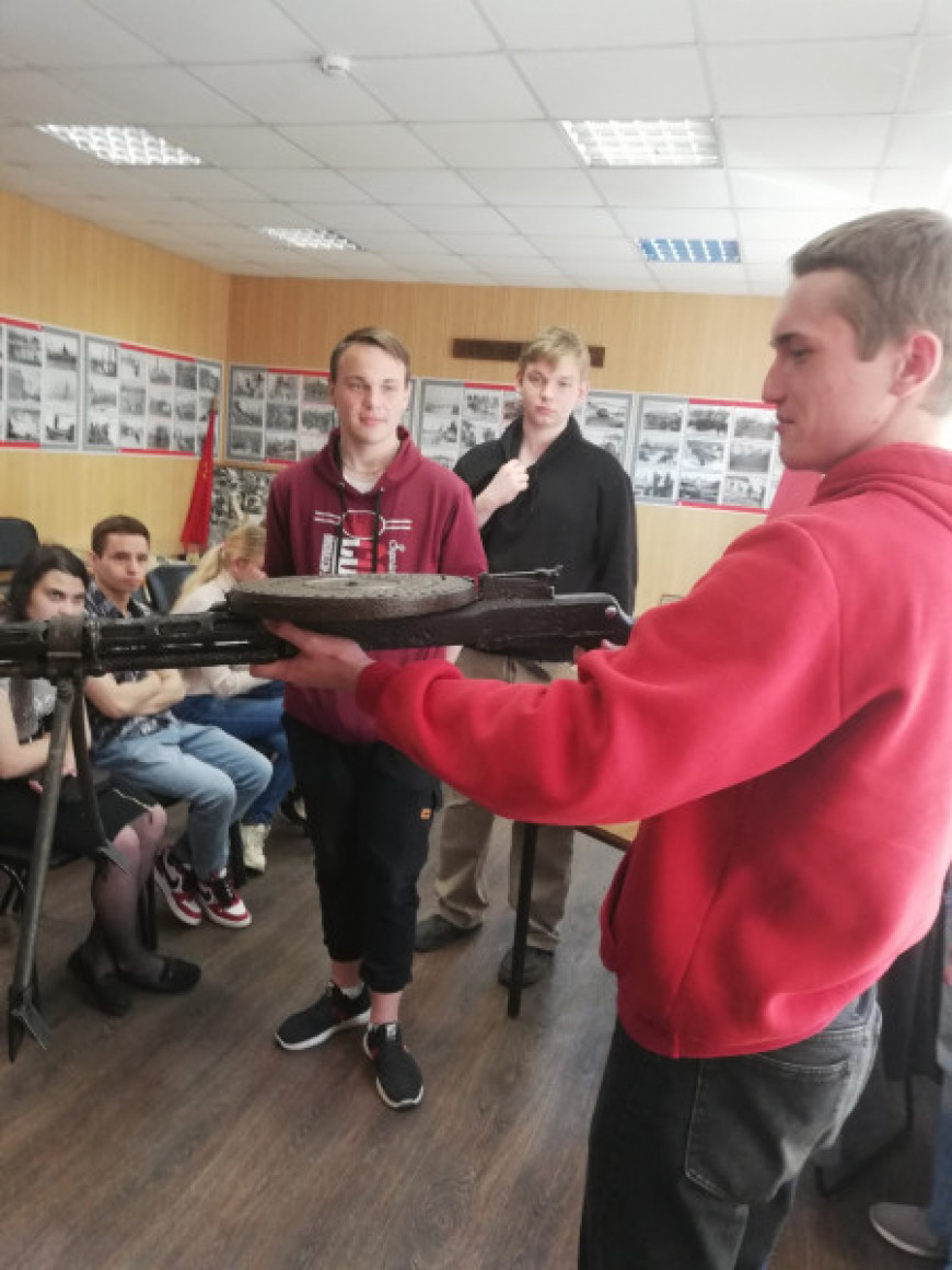 Директор музея, ветеран МВД, подполковник полиции в отставке И. Матросов рассказал о подвигах новгородских сотрудников МВД в годы Великой Отечественной войны и во время локальных военных конфликтов. Познакомил экскурсантов с образцами оружия и обмундирования солдат Великой Отечественной и современных Вооруженных сил.