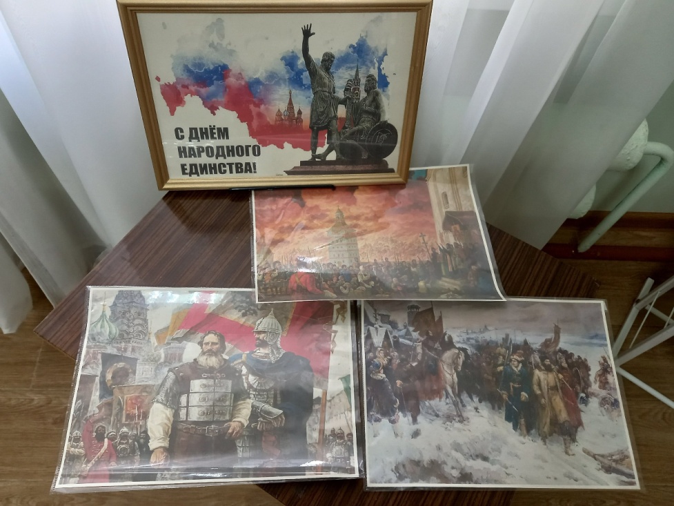 Учащиеся познакомились с историей возникновения праздника, с событиями 1612 года, истоками Смуты, с тем, как народное ополчение во главе с князем Дмитрием Пожарским и земским старостой Кузьмой Мининым добилось освобождения столицы от иноземцев. Затем участники мероприятия ответили на вопросы викторины «От Руси к России», соединили части пословиц о Родине, разгадали кроссворд.