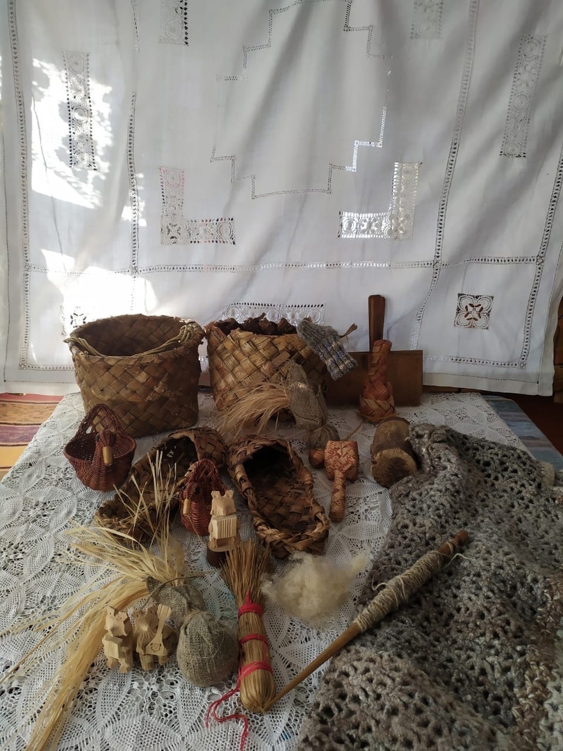 Такие изделия представлены на выставке, здесь можно увидеть предметы домашнего обихода, бережно сохранённые участниками клубного объединения «Усадьба».