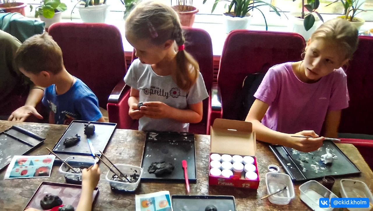 Сегодня в МАУК "Холмский ЦКД", прошел очередной летний мастер-класс для детей по лепке из глины.