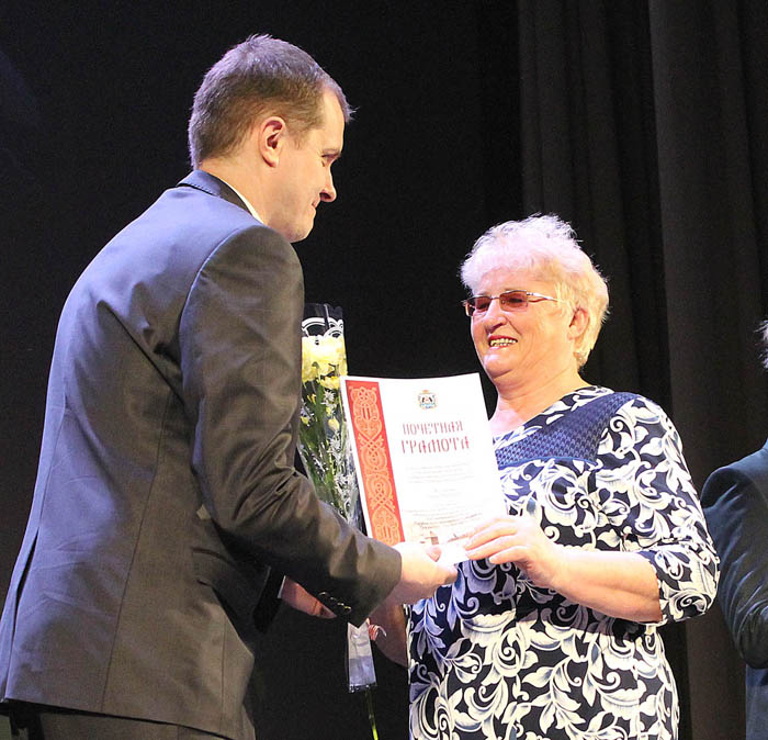 За многолетний и добросовестный труд, высокий профессионализм Почетные грамоты Министерства культуры Новгородской области вручены методисту по туризму МБУ ЦФМТО Инне Карпуновой, библиотекарю Лажинской сельской библиотеки Лидии Мосенковой, заведующей ДК д. Юрьево Альбине Алексеевой; Благодарственное письмо Министерства культуры Новгородской области — главному бухгалтеру МБУ ЦФМТО Наталье Егментьевой. За активную работу в профсоюзе Благодарностью Новгородской областной организации профсоюза работников культуры отмечена заведующая Налючским ДК Вера Петухова, Почетной грамотой Новгородской областной организации профсоюза работников культуры — художественный руководитель Полавского ДК Лариса Шанаева. Виновники торжества, а их более 30 человек, поднимались на сцену, а вместе с наградой получали зрительские овации и звучавшие в их адрес: «Браво!», «Молодцы!».