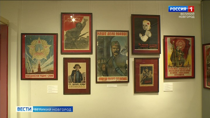 Среди раритетов выставки уникальные знамена 1920-х годов, сшитые и расписанные вручную, агитационные плакаты времен Великой Отечественной войны и довоенный фарфор, созданный на новгородских предприятиях "Коминтерн", "Красный фарфорист", "Пролетарий".