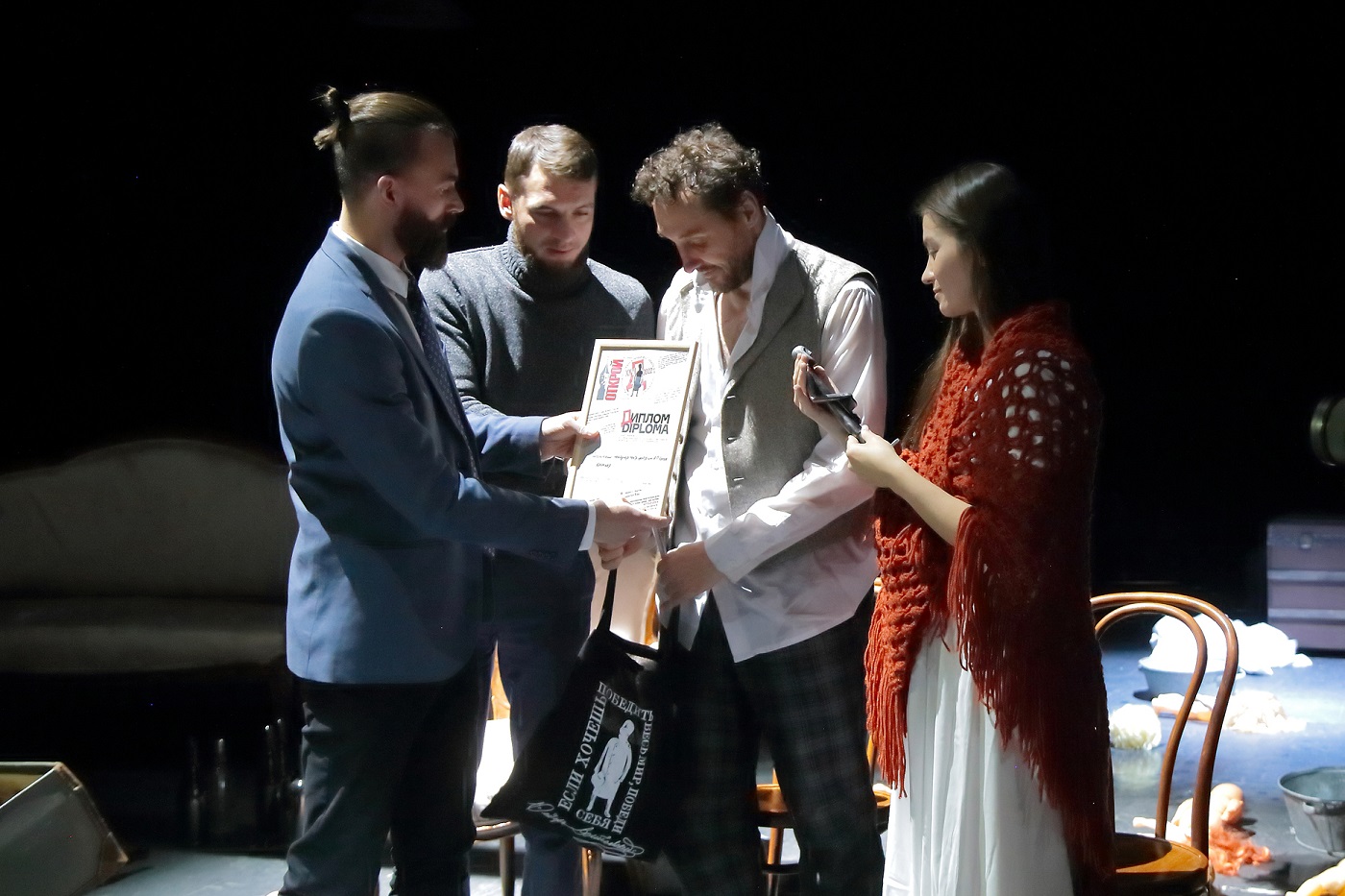 На закрытии фестиваля генеральный директор областного театрально-концертного агентства Василий Ян вручил труппе Сахалинского театра диплом участника фестиваля и его символ — статуэтку новгородского скульптора Вячеслава Смирнова.