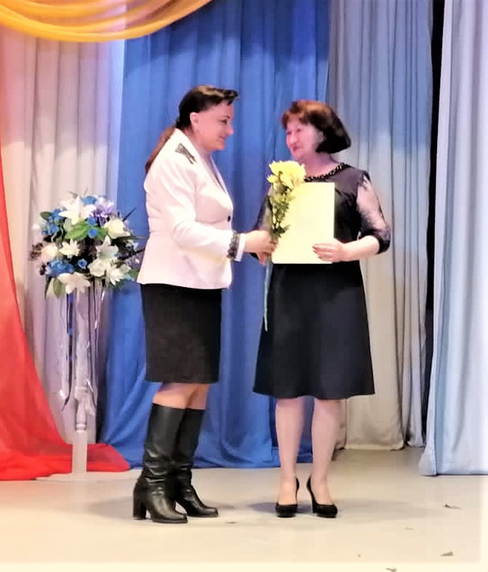 Елена Викторовна вручала Почетные грамоты и Благодарности министерства культуры Новгородской области, регионального и Российского профсоюза работников культуры, администрации района.