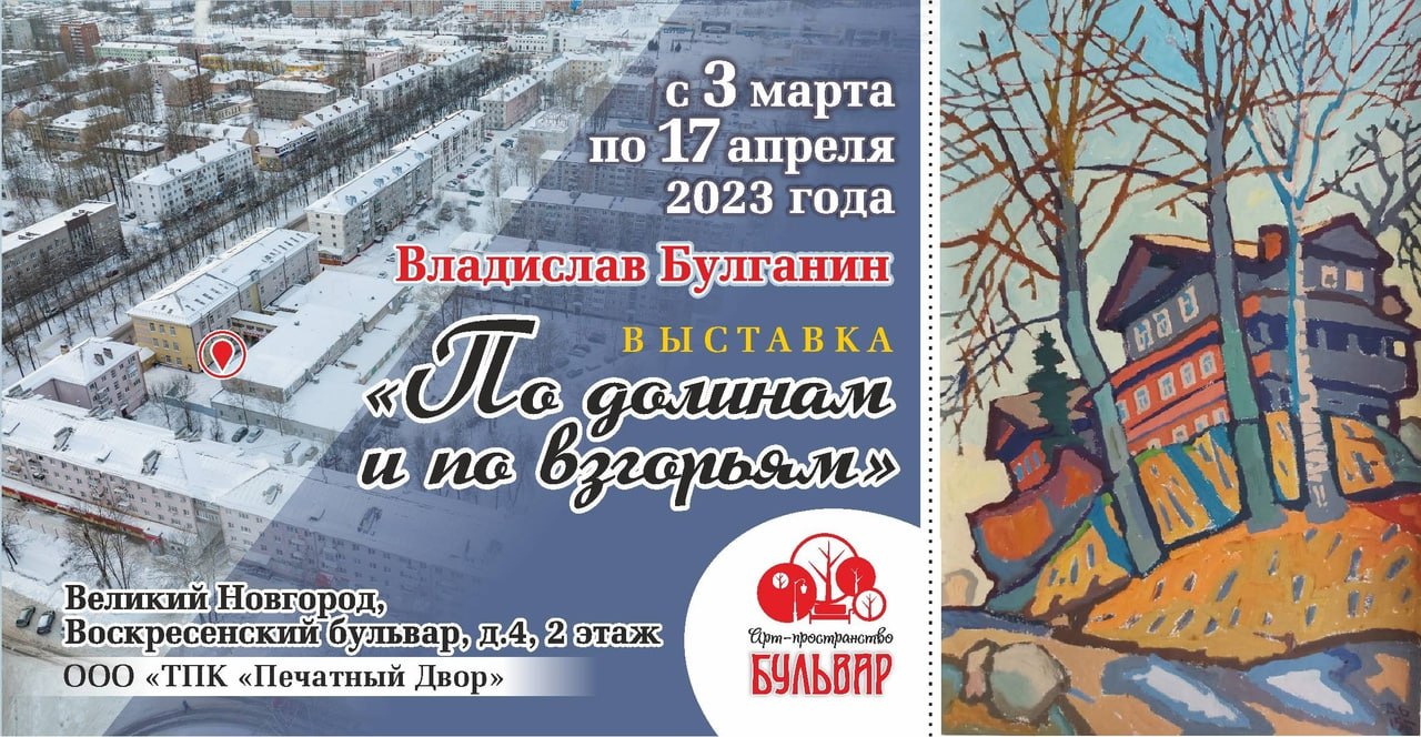 С 3 марта в арт-пространстве «Бульвар» в Великом Новгороде будет работать выставка «По долинам и по взгорьям». Её автор — Владислав Булганин, член Союза художников России и руководитель Народной студии ИЗО им. Э. Иванова.