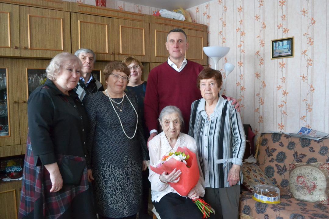 Мэр Великого Новгорода Александр Розбаум поздравил юбиляра и передал именное поздравительное письмо от Президента Российской Федерации Владимира Путина и букет цветов.