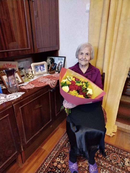 Специалисты отдела-центра по работе с населением по месту жительства "Псковский" Администрации Великого Новгорода передали юбиляру именное поздравительное письмо от Президента Российской Федерации Владимира Путина, букет цветов и свои искренние поздравления с юбилеем.
