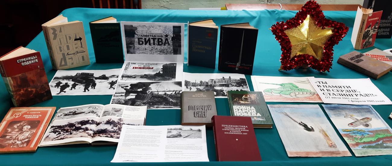 Выставка литературы «Сталинградская битва - 200 дней и ночей во имя ПОБЕДЫ»