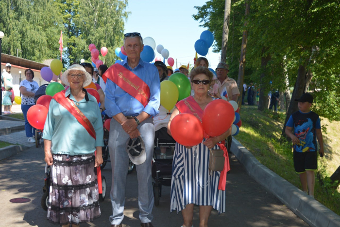 Первыми в колонне шагали почётные граждане Марёвского района — Анатолий Васильевич Касаткин, Наталья Александровна Бравина, Светлана Феофановна Нилова. Остальные их «коллеги» не смогли участвовать в шествии по состоянию здоровья и иным причинам.