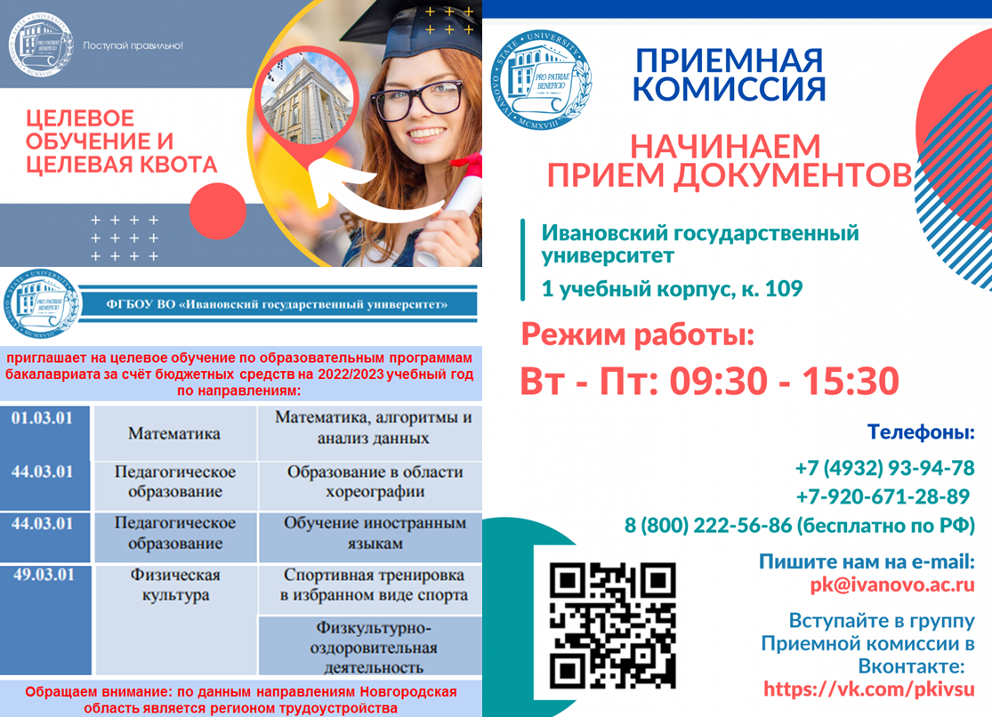 Раздел "Приёмная комиссия": http://ivanovo.ac.ru/sveden/struct/1504/