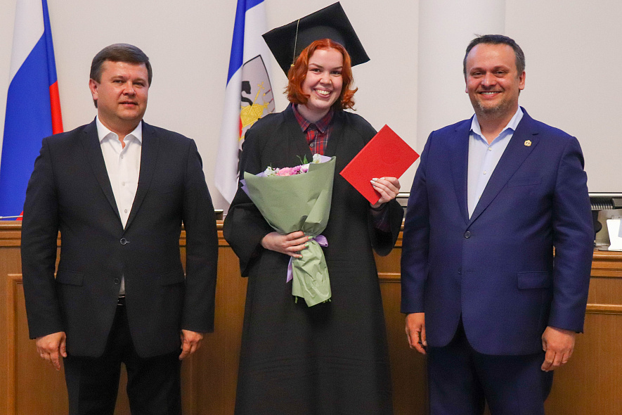 В этом году учёбу с отличием закончили 25 студентов институтов, колледжей и отделений среднего профессионального образования. Они получили дипломы из рук губернатора Новгородской области Андрея Никитина и ректора НовГУ Юрия Боровикова.