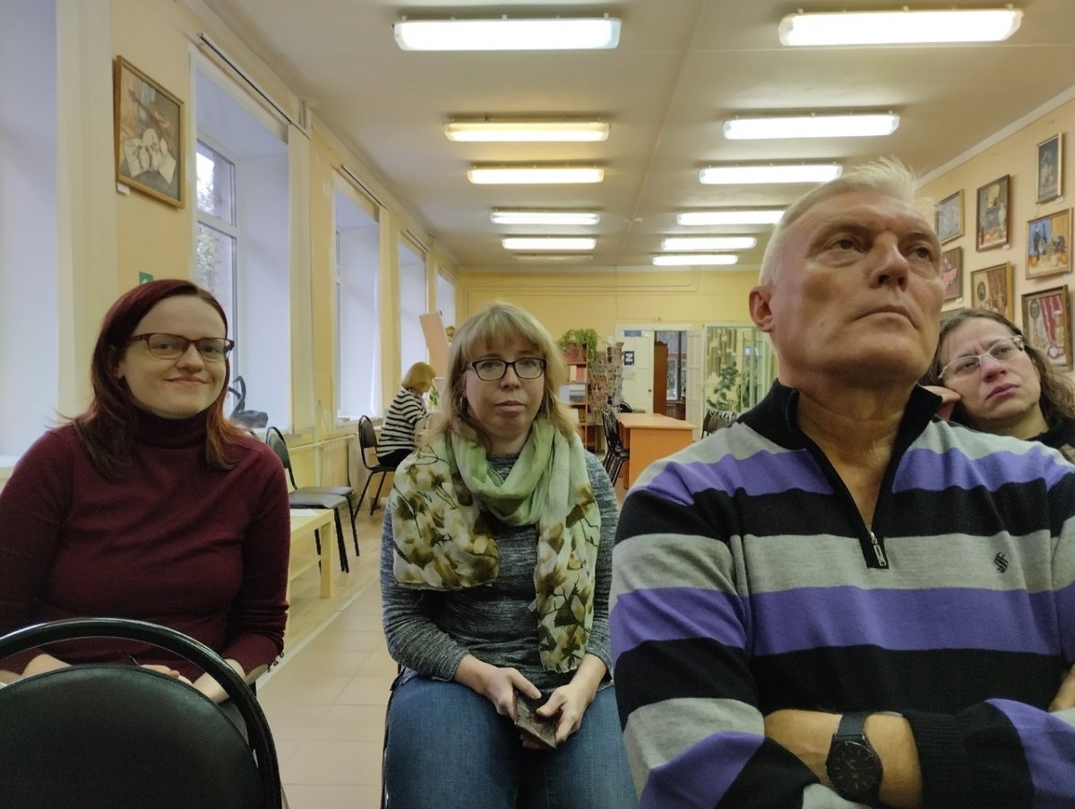 Всего на встречу пришло 8 человек, но здесь количество – это, наверное, не главный показатель. Самое важное в таких встречах – вовлечённость в беседу всех участников обсуждений, основанная на знании текстов и желании о них поговорить. Что греха таить – на многие встречи с писателями часто приходят люди, которые не знакомы с их творчеством. Если поэты сравнительно легко могут познакомить слушателей со своими стихами, тут же прочитав их, то прозаикам в этом отношении труднее.