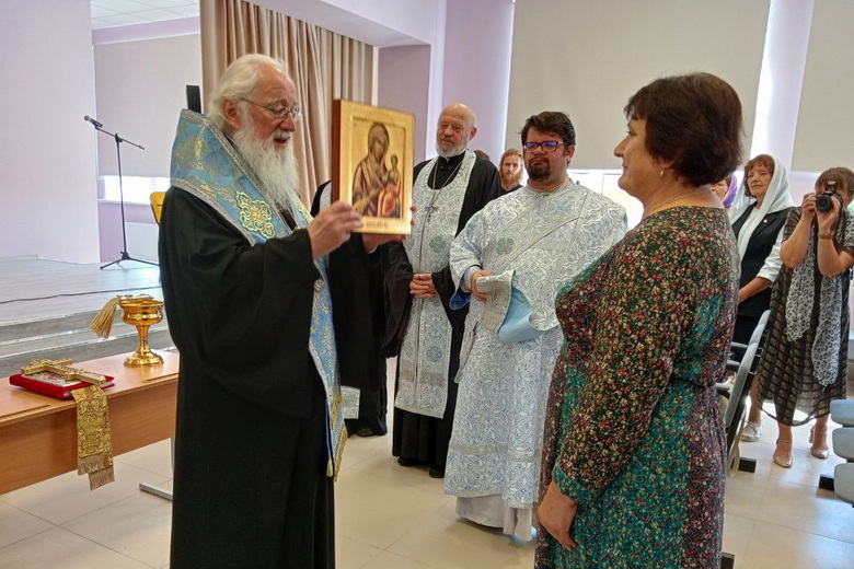 Митрополит Лев вручил директору школы икону Пресвятой Богородицы. Затем для владыки была проведена экскурсия по учебному заведению.