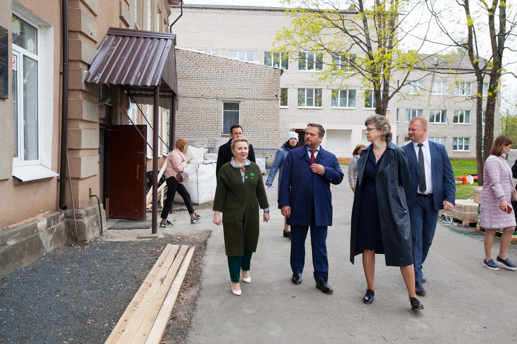 © Пресс-центр правительства Новгородской областиСегодня, 18 мая, школу посетил губернатор Андрей Никитин. Он пообщался с представителями штаба родительского контроля, который следит за ходом ремонтных работ.