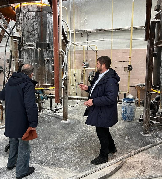 Проректор по научной работе НовГУ Андрей Ефременков и инженер лаборатории «автономного транспорта» Борис Саламатин посетили «Новгородский завод стекловолокна».