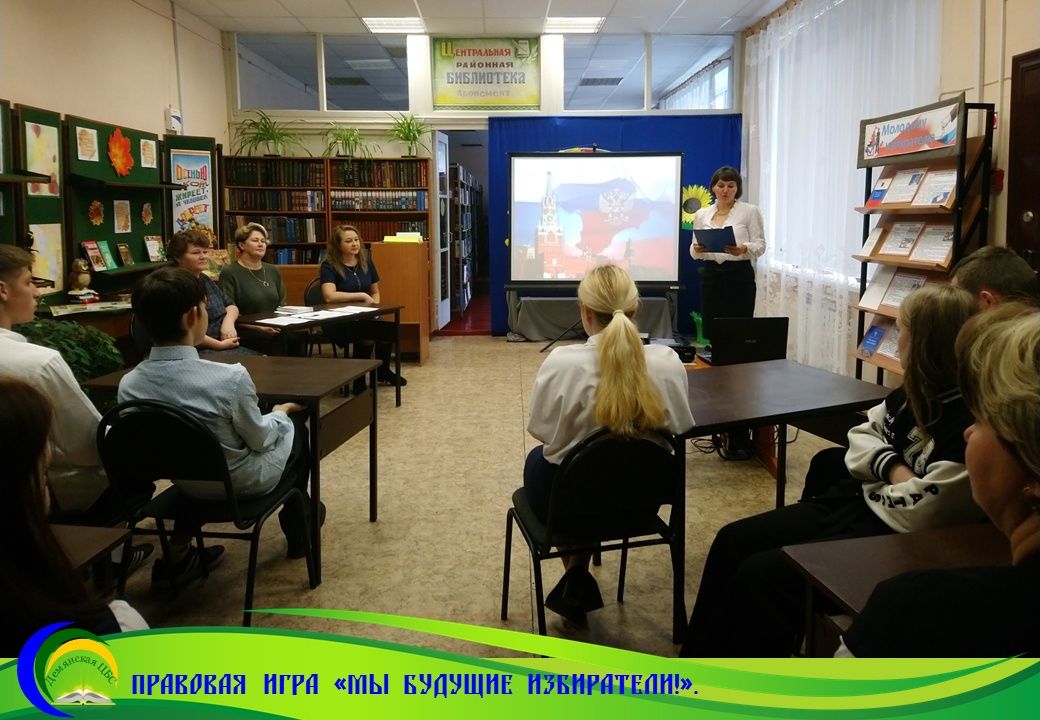 В современном мире правовые знания нужны всем гражданам без исключения. Библиотеки по праву считаются одним из важных звеньев в системе правового просвещения населения. 26 сентября Центральная районная библиотека организовала для учащихся 11 класса Демянской средней школы правовую игру «Мы будущие избиратели!».