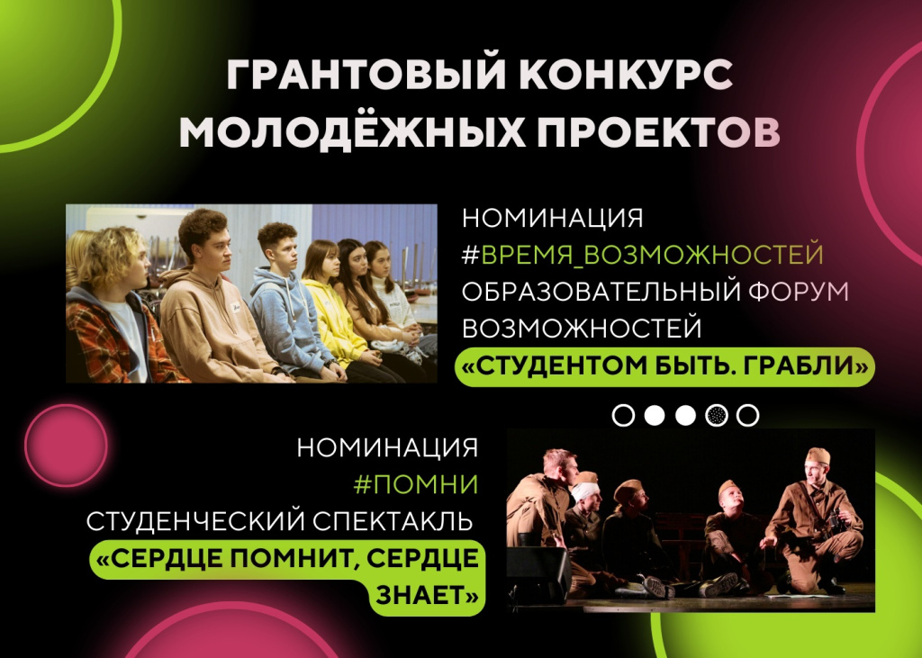 Проект Степана Малахова «Образовательный форум возможностей «Студентом быть. Грабли» победил в номинации «Время возможностей». В номинации «Помни» лучшим признали студенческий спектакль «Сердце помнит, сердце знает» под руководством Дарии Барановой.