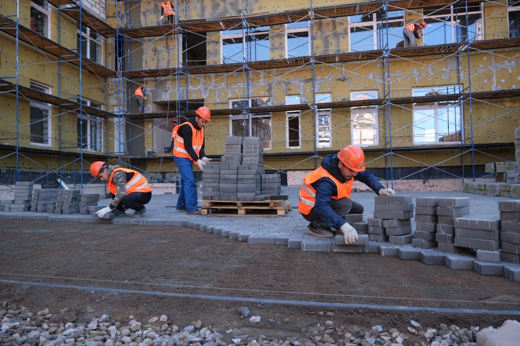 © Пресс-центр правительства Новгородской областиО готовности объекта рассказал заместитель министра строительства Новгородской области Александр Гребенюк. По его словам, завершены монолитные работы по конструктиву здания. Строители продолжают отделку фасада и внутренние работы. Благоустройство территории должно быть закончено до 20 октября. Работа организована в две смены.