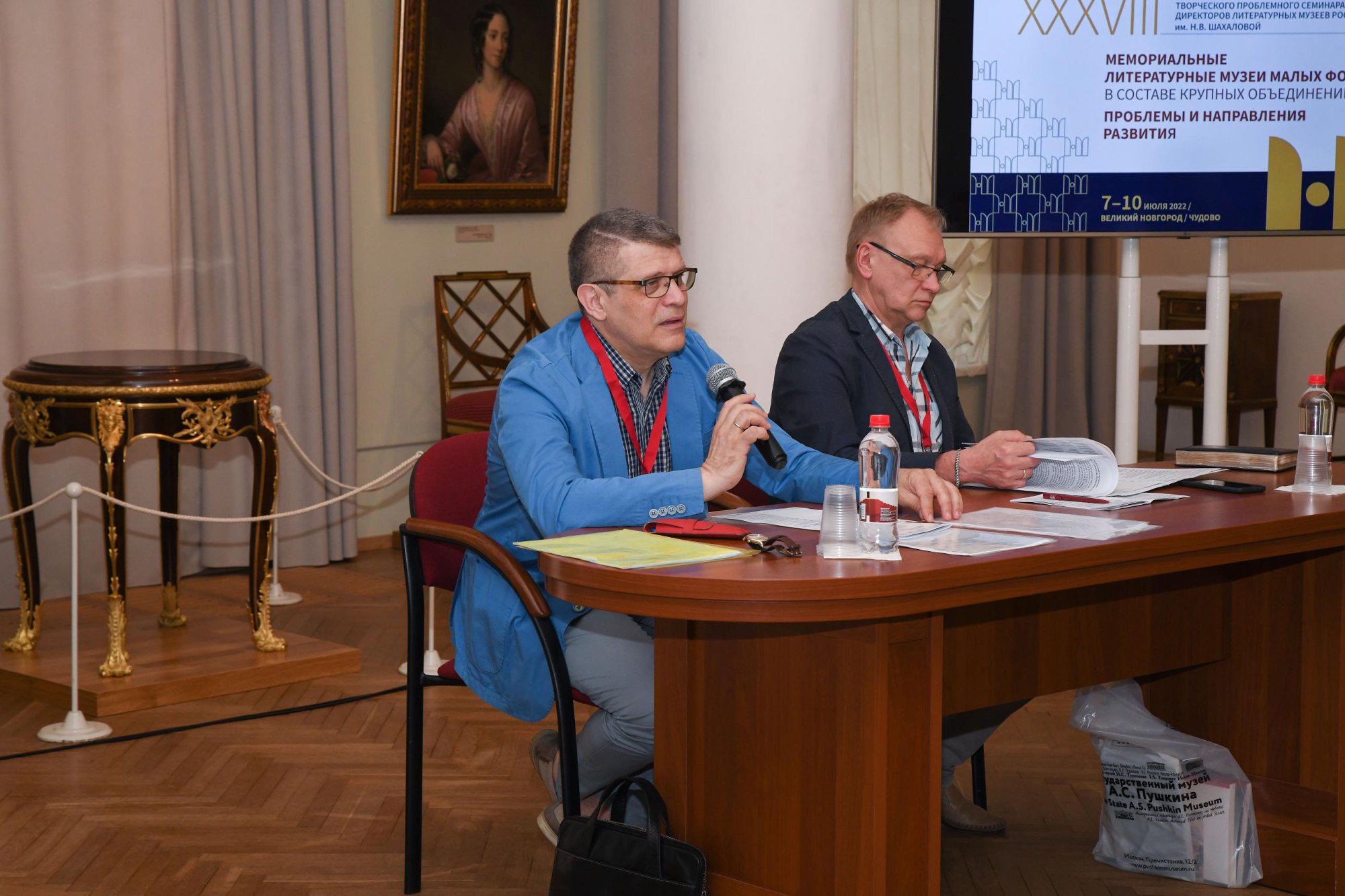 В Новгородском музее-заповеднике продолжается 38-я сессия творческого проблемного семинара директоров литературных музеев России. 9 июля под председательством Дмитрия Бака и Евгения Богатырева руководители провели открытое заседание, на котором были представлены новые члены Ассоциации литературных музеев Союза музеев России, обсуждались совместные проекты и мероприятия под эгидой Ассоциации.
