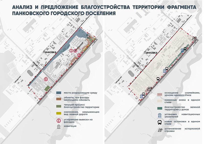 — Жители хотят отразить в дизайн-коде Панковки её особенности. Во-первых, это рабочий поселок, где сосредоточены производства. Во-вторых, местное население увлекается спортом — хоккеем, футболом, бегом. Также жители считают символом Панковки мост через Веряжу, по их рассказам, он ранее вел к постройкам древнего Мостищенского монастыря. После получения сведений городская среда поселка тщательно анализировалась. Дизайнеры проводят фотофиксацию состояния архитектурных объектов, малых архитектурных форм, наличия визуального мусора. На основании этого анализа формируются предложения по приведению среды к единому стилю: начиная от логотипа посёлка, заканчивая адресными табличками и рекламными вывесками, — рассказал заведующий кафедрой дизайна НовГУ Алексей Гаврилов .