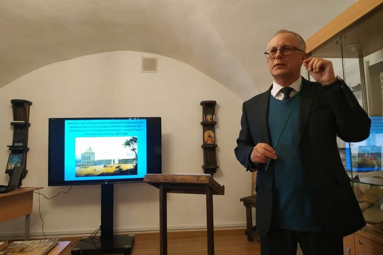 Далее речь пошла о системе образования и ее реформах в XIX веке и о государственных деятелях, которые на нее повлияли, в частности о Михаиле Сперанском – авторе проекта создания Царскосельского лицея. Михаил Раненко напомнил, что лицей был основан в 1811 г. по указу императора Александра I. Автор проекта создания лицея М.М. Сперанский видел в новом учебном заведении не только школу для подготовки образованных чиновников. Он хотел, чтобы лицей воспитал людей, способных претворить в жизнь намеченные планы преобразования Российского государства.