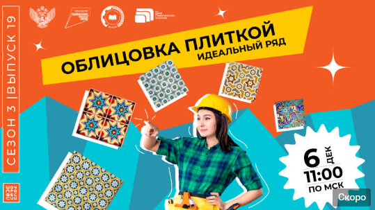 6 декабря в 11:00 часов состоится очередной выпуск от проекта «Шоу профессий» по компетенции «Облицовка плиткой» - «Идеальный ряд», посвящённый облицовщикам-плиточникам – профессионалам,