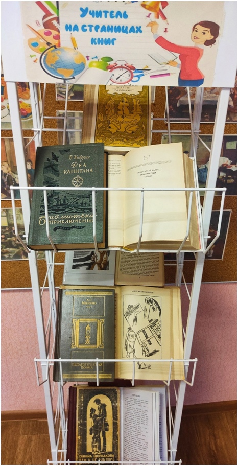 В Центральной районной библиотеке оформлена выставка «Нет на свете мудрее профессии», где рассказывается не только об учителях, но и о том, с чем они сталкиваются в своей работе, какие элементы воспитания они используют в своем нелегком труде и как в дальнейшем это влияет на жизнь главных героев.