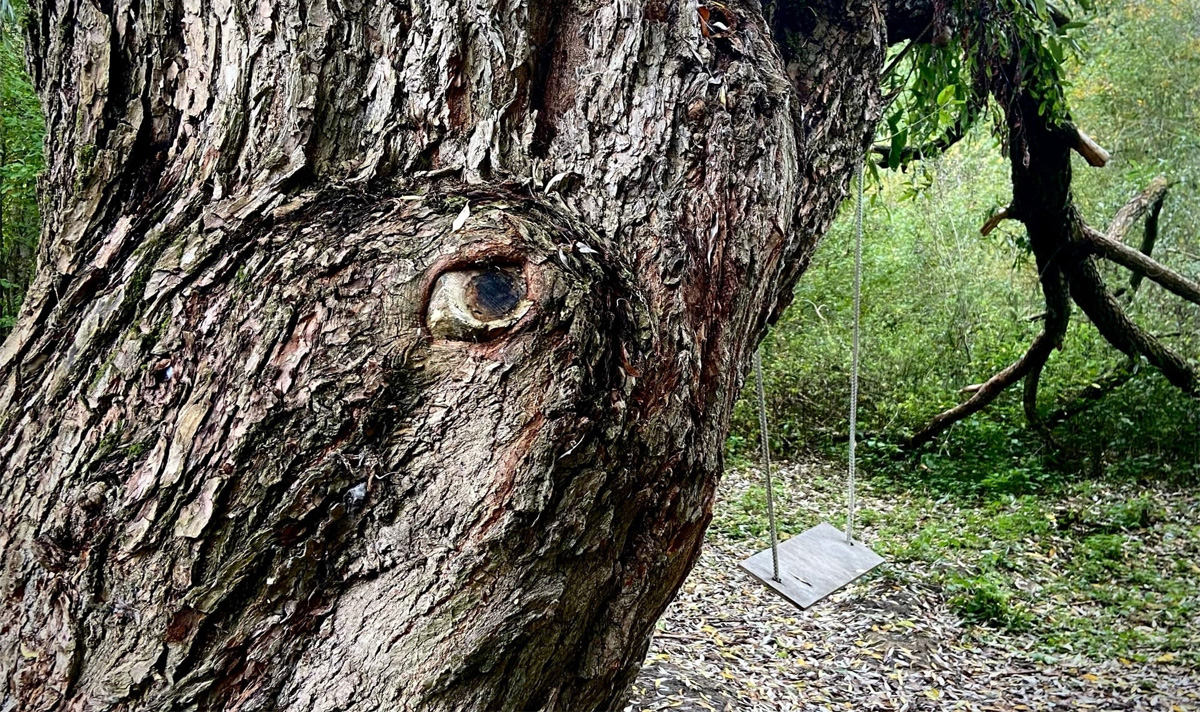 Дерево с «глазами» наблюдает за посетителями парка «Красное поле»