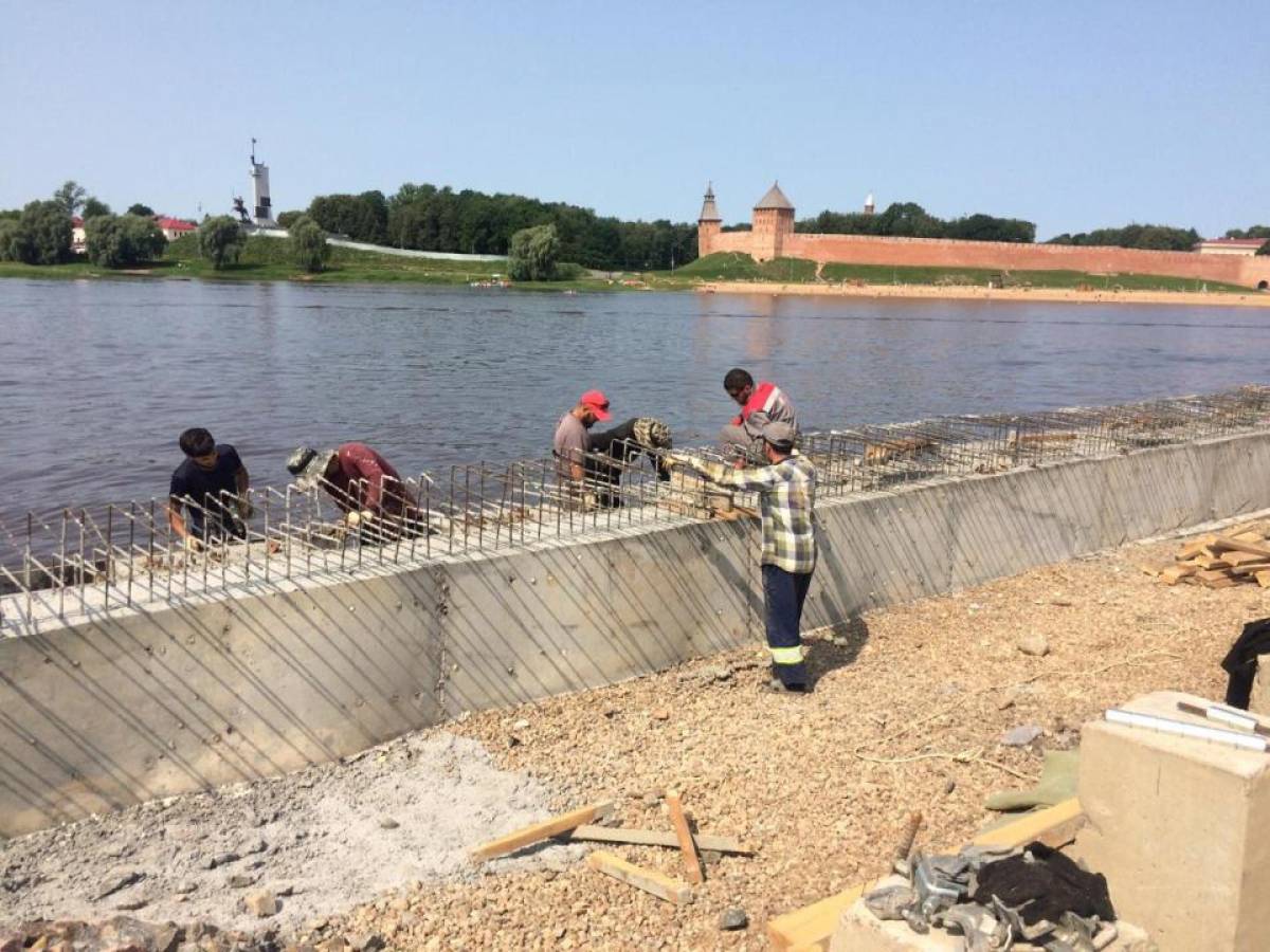 По словам начальника Управления капитального строительства администрации Великого Новгорода Василия Смыслова, весной и первой декаде лета высокая вода на Волхове не позволяла работать в полную силу, сейчас на объекте завезено больше техники, увеличено количество специалистов. Земляные и строительно-монтажные работы ведутся по графику.