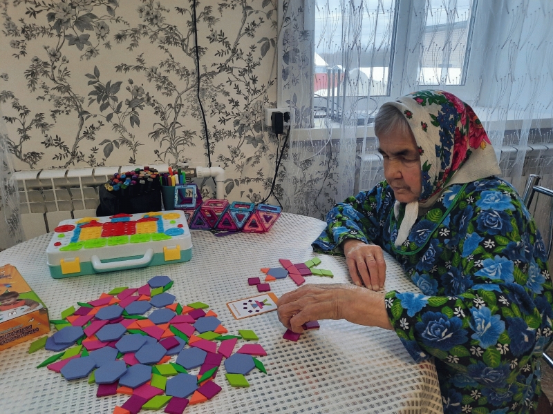 Основой активного долголетия человека является, прежде всего, образ его жизни. Для своих уважаемых подопечных мы стараемся сделать каждый день насыщенным, разнообразным и неповторимым. На индивидуальных занятиях с помощью настольных логических игр получатели социальных услуг: тренируют мелкую моторику, активизируют мышление и просто с пользой проводят свободное время.
