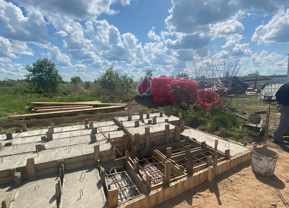 Также идёт подготовка бетонных оснований под малые архитектурные формы. Все строительные материалы завозятся на объект по мере необходимости. Работы ведутся по графику.