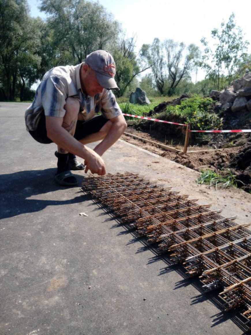 6 августа в сквере кипела работа. С утра готовился котлован под залитие бетонной плиты перед памятником БТР.