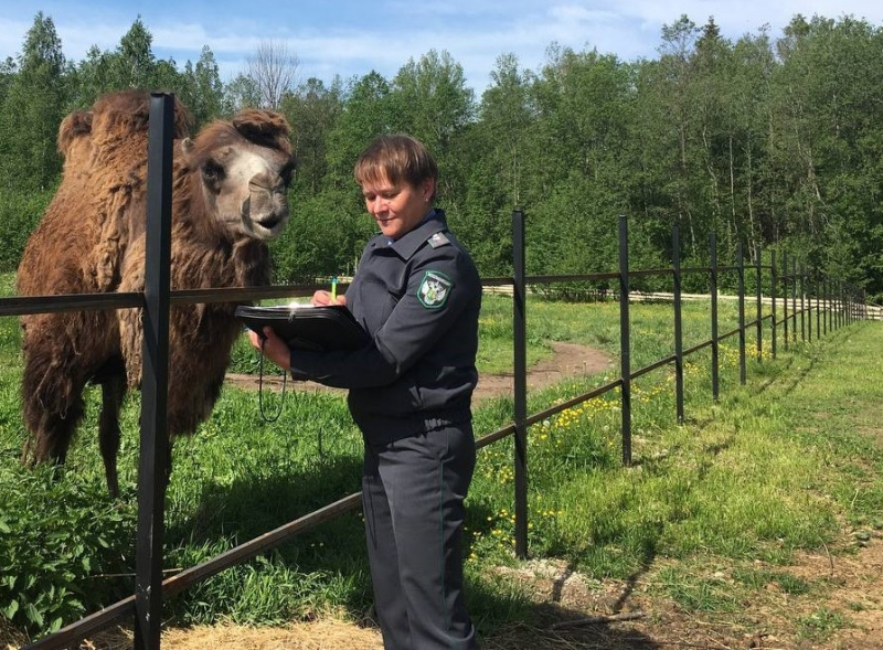 Инспекторы по заявлению владельца парка (соискателя лицензии) выехали на место для проведения клинического осмотра, а также проверки условий содержания верблюда Бактриан, яка, пони, ламы, кенгуру Беннета, оленей, лис, Валлийских баранов, Камерунских коз, енотов-полоскунов, цесарок, павлинов и других животных и птиц.