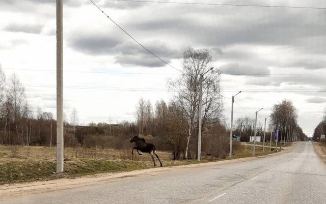 Фотографией молодого лося, «грациозно» убегающего с проезжей части рядом с Валдаем, поделилась в соцсети вчера, 2 мая, подписчица сообщества «Валдай».