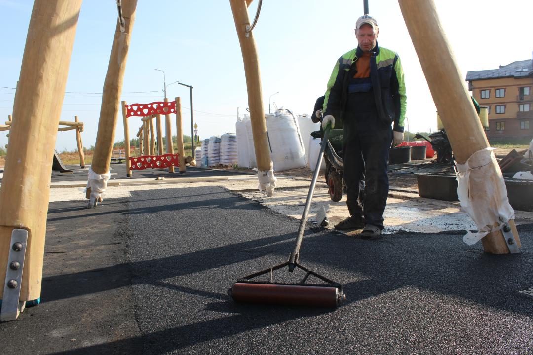 — Черновой слой из измельченной резиновой крошки необходимо стелить для обеспечения мягкости двухслойного покрытия. Гладкая и в тоже время нескользкая поверхность позволит обезопасить детей во время любой активности и предотвратить серьезные травмы, — рассказал бригадир ООО «Азбука» Сергей Козлов.