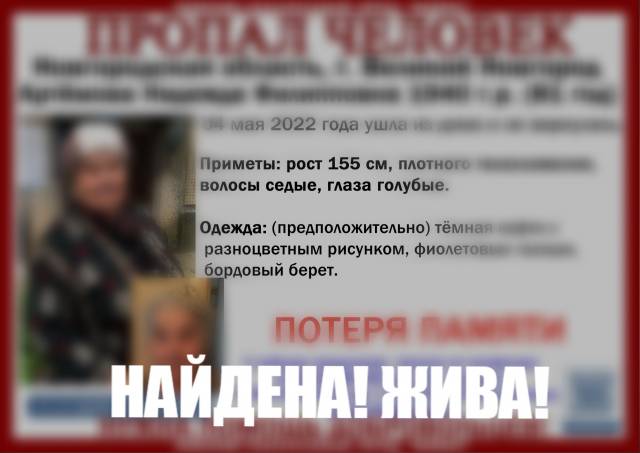 В результате пенсионерку в тот же день обнаружили волонтёры поисково-спасательного отряда «Феникс» на улице Морозовской в Великом Новгороде.