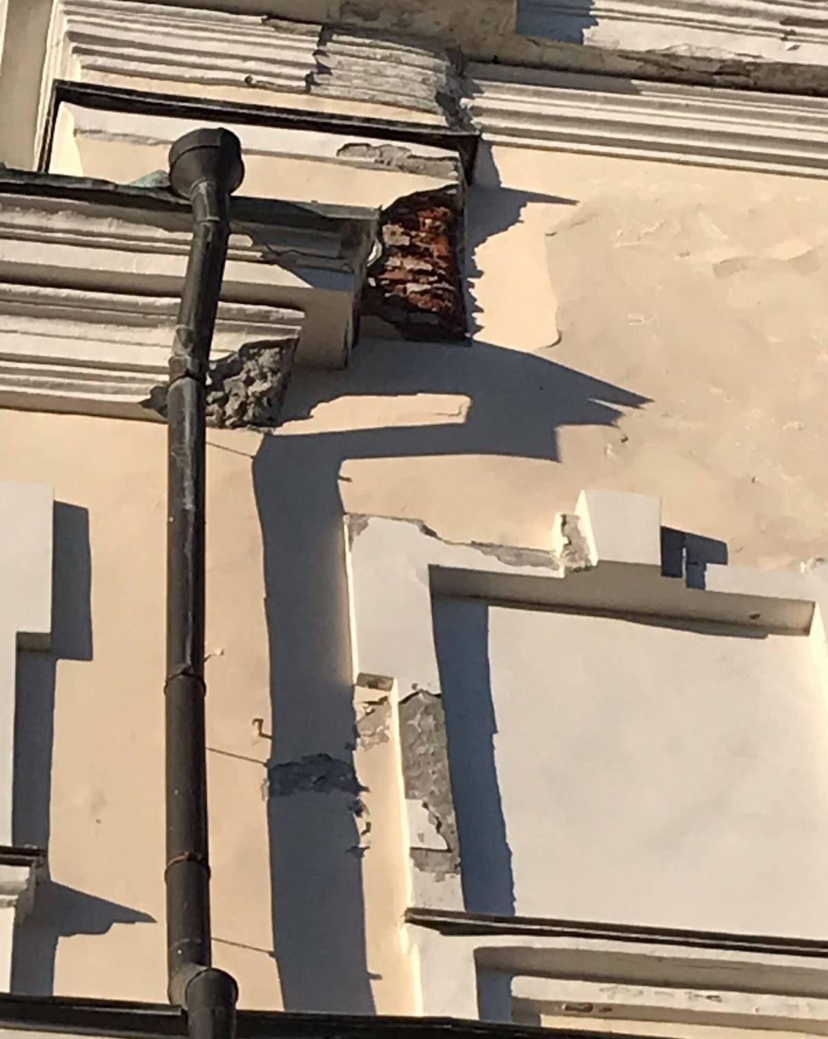 Как заверили жители, прохожим на голову порой сыплется не только штукатурка, но и куски кирпичей.