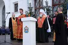 Митрополит Лев обратился к собравшимся с приветственным словом. Он отметил, что сегодняшнее событие знаменательно тем, что проходит в праздник Пасхи, Воскресения Христова, когда мы отмечаем победу добра над злом: «Мы сегодня вспоминали всех воинов, которые защищали Родину, от начала нашей Отечественной истории. Особенность нашей земли в том, что несмотря на внутренние конфликты или гражданские войны, когда Отечеству грозит опасность, народ объединяется в едином порыве защитить Русь Святую, чтобы победить зло. Так было на протяжении всей истории, так происходит и сегодня… Я призываю всех вас помнить, что мы русские! Не посрамим же памяти наших предков и всех, кто положил жизнь свою нашей ради свободы, и призываю всех присутствующих взять эстафету по защите нашего Отечества, которую передали нам наши предки. Объединимся в молитве и трудах вокруг нашего лидера и нашей страны».
