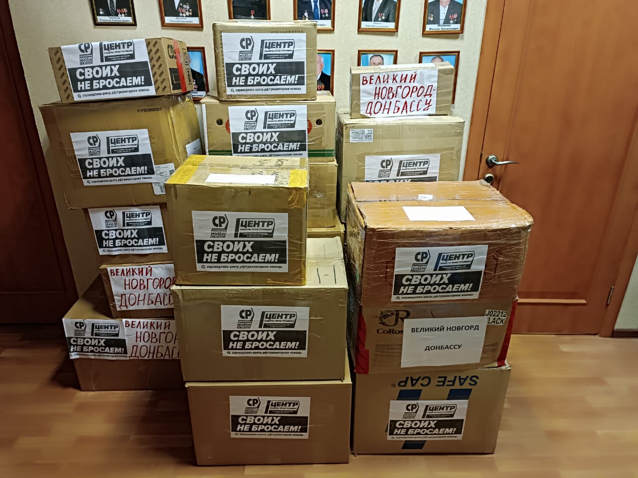 Региональное отделение партии и Центр защиты прав граждан выражает огромную благодарность за активную помощь в формировании груза: Городскому обществу инвалидов, редакции газеты "Русский караван", ООО "Европа", Ирине Егоровой, и каждому откликнувшемуся жителю Великого Новгорода.